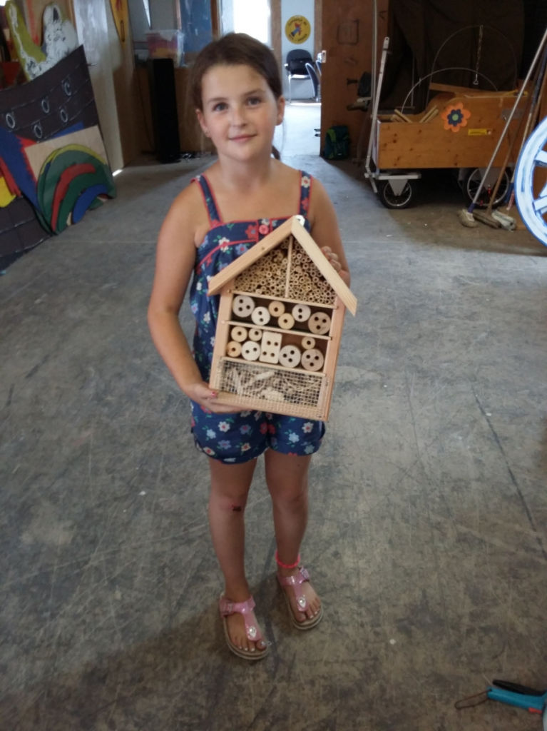 Begeistert bei der Sache: Kinder bauen ein Insektenhotel (26.07.2018)