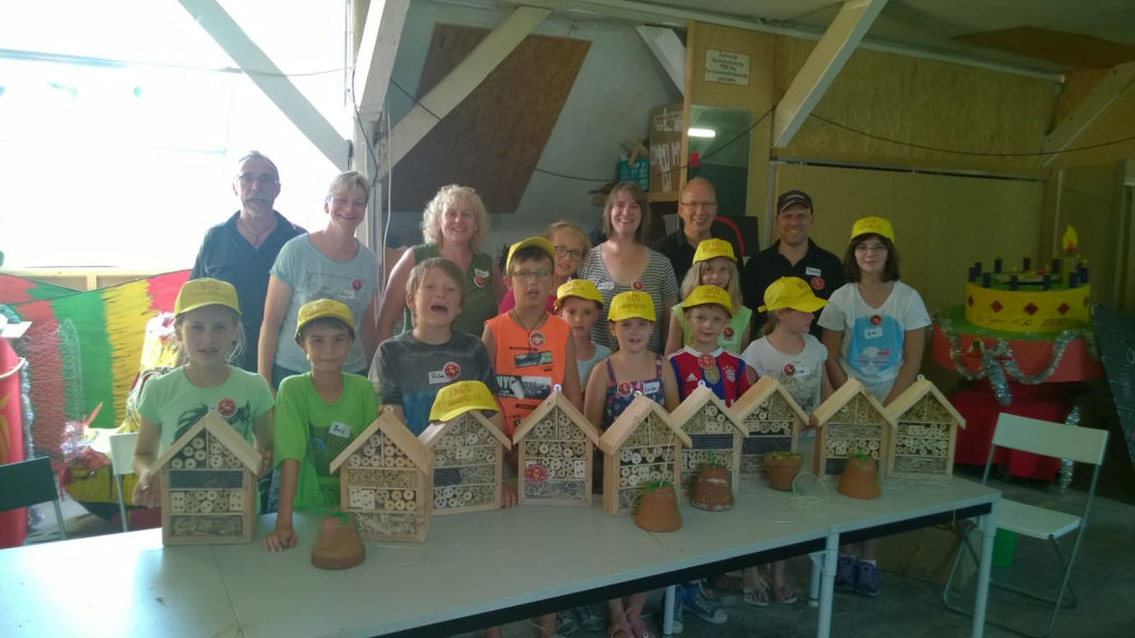 Dem Thema Bienen und Insekten hat sich der Narrenclub Oberndorf bei den Ferienspielen angenommen. 10 Kinder im Alter von neun bis zwölf Jahren bauten Insektenhotels, in denen künftig verschiedene Insekten wie Wildbienen, Hummeln, Wespen und viele andere Arten Unterschlupf finden. Dabei war den Kindern durchaus bewusst, wie wichtig die Insekten, ganz besonders die Bienen für die Umwelt sind. Schreinermeister Thomas Sinsel, spendete das Holz für das tolle Projekt. Alle waren begeistert bei der Sache, es musste gebohrt, genagelt und geschraubt werden. Und nicht nur die Jungs sind handwerklich begabt, auch die Mädchen wissen, wie man mit den Werkzeugen umgeht. Zur Stärkung wurde Kuchen, Laugengebäck und Eis geboten, was natürlich allen sehr gut schmeckte. Nun werden gespannt die ersten Bewohner erwartet. Zum Abschluss bekam jedes Kind noch eine Schirmmütze mit Vereinslogo geschenkt.